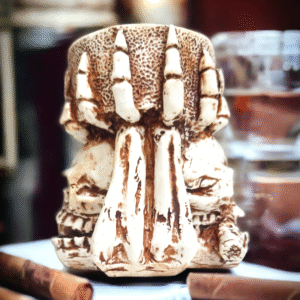 The Global Aroma Skeleton ashtray summons spooky style. Crafted from smooth resin with faux marble accents, its skull-and-crossbones motif turns an everyday accessory into a Gothic statement piece. While it’s washable design makes emptying ashes a cinch, you may find yourself leaving it proudly on display when not in use. After all, an ashtray this iconic deserves to be shown off. Light up and watch the smoke waft through the skull’s hollow eyes for a delightfully ominous effect. When Halloween comes around, this ashtray is the perfect finishing touch for your decor. But with a design this wickedly chic, its sinister style is suitable all year round. For those who march to the beat of their own drum and aren’t afraid to show it, this skull-adorned ashtray is a must-have collectible. Your inner rebel is calling—will you answer?