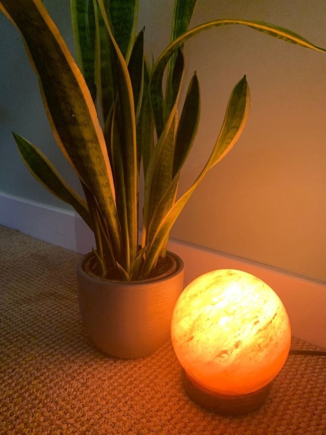 Himalayan Rock Salt Lamp in the shape of a sphere/globe has boundless potential.