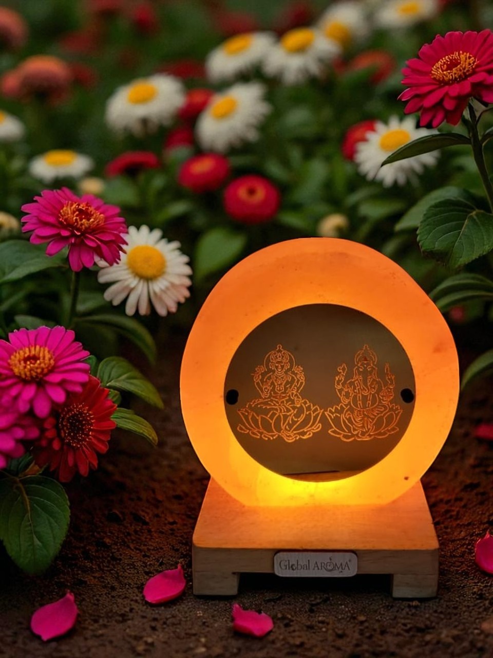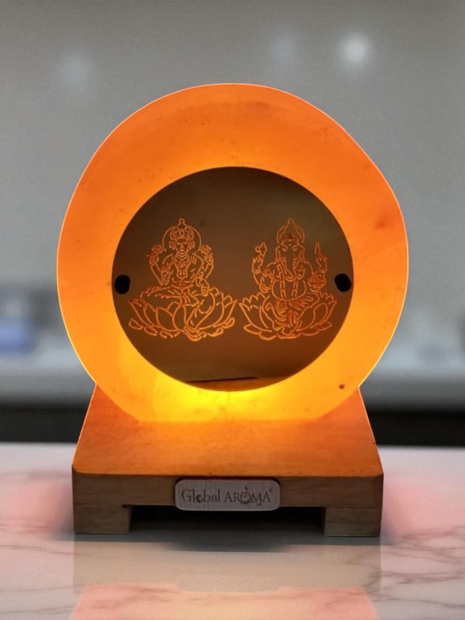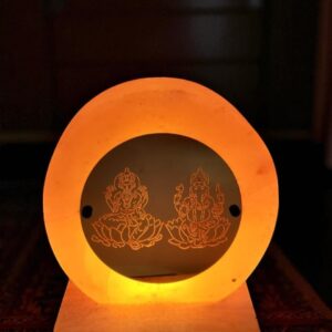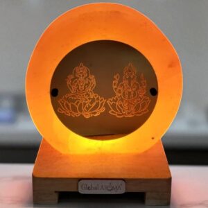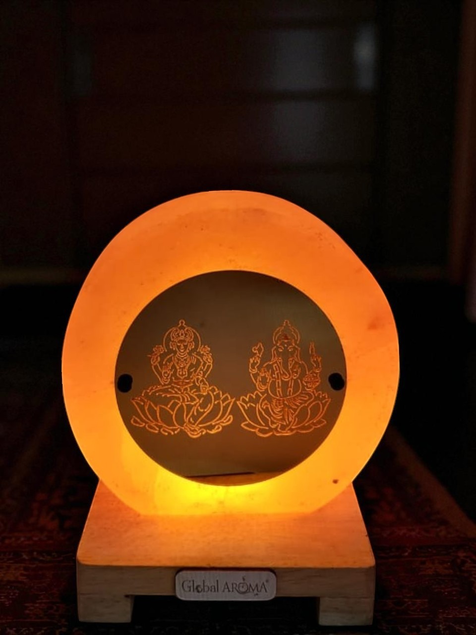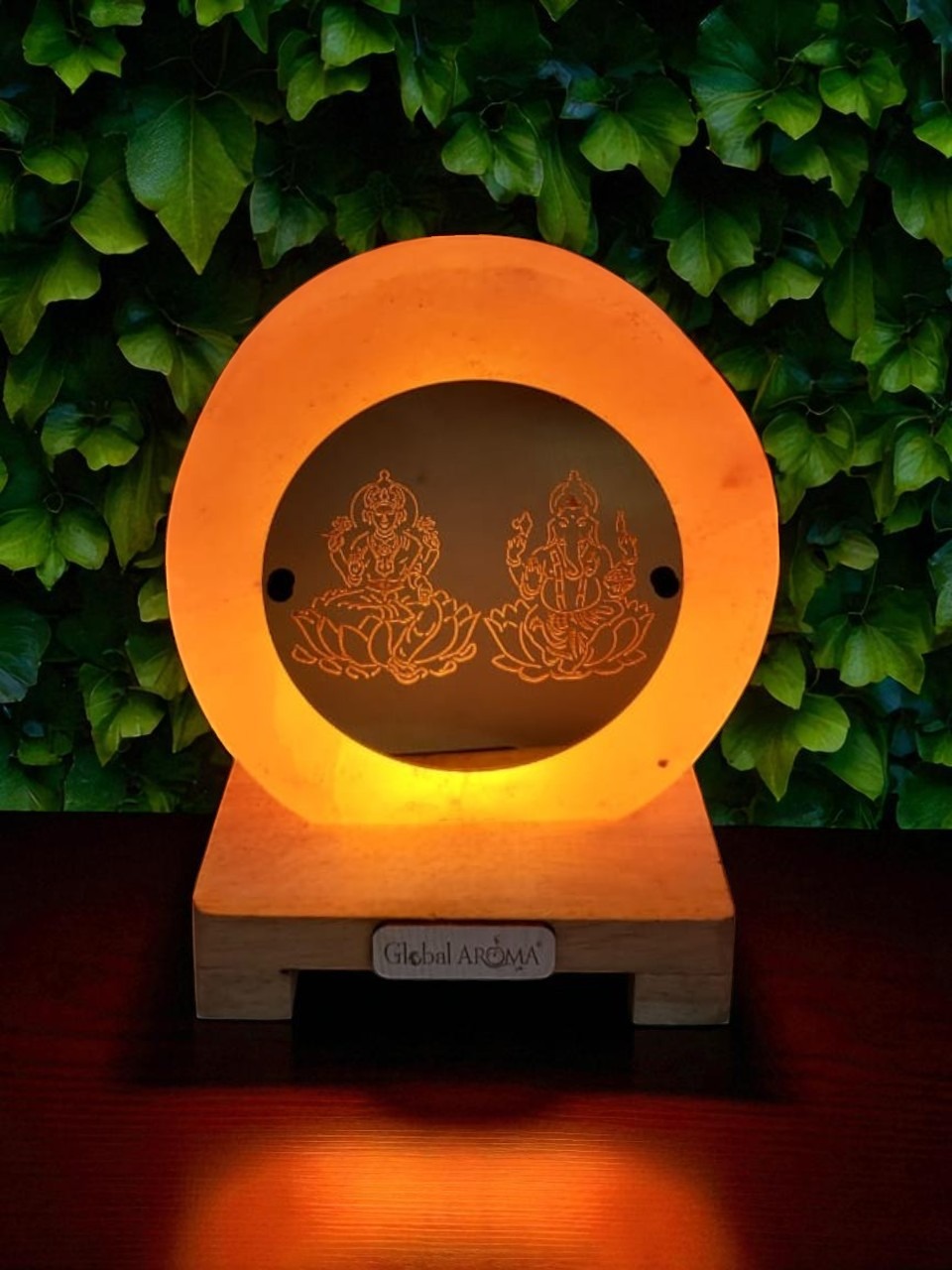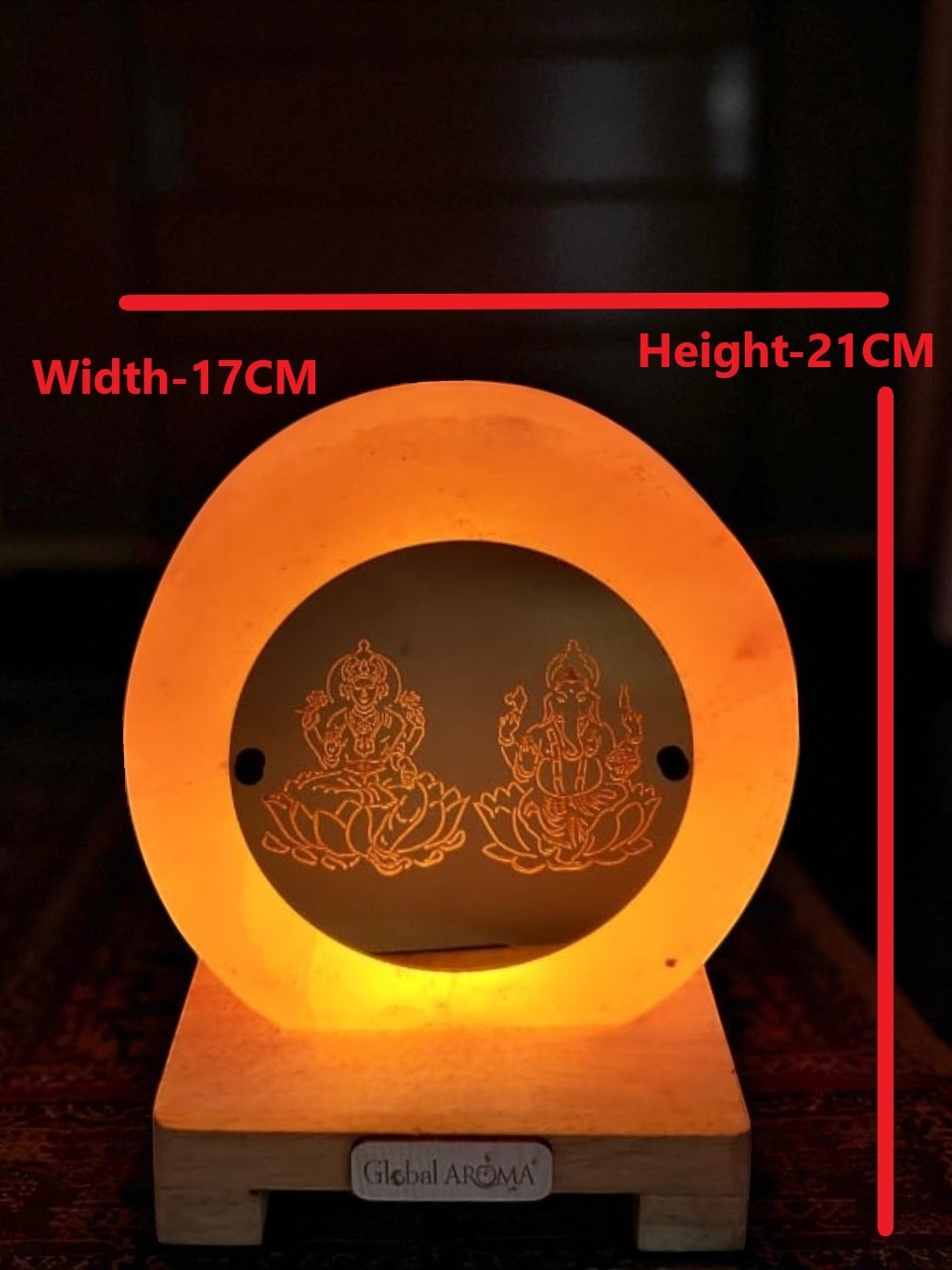 Golden Plate Laxmi Ganesha Himalayan rock salt crafted Lamp