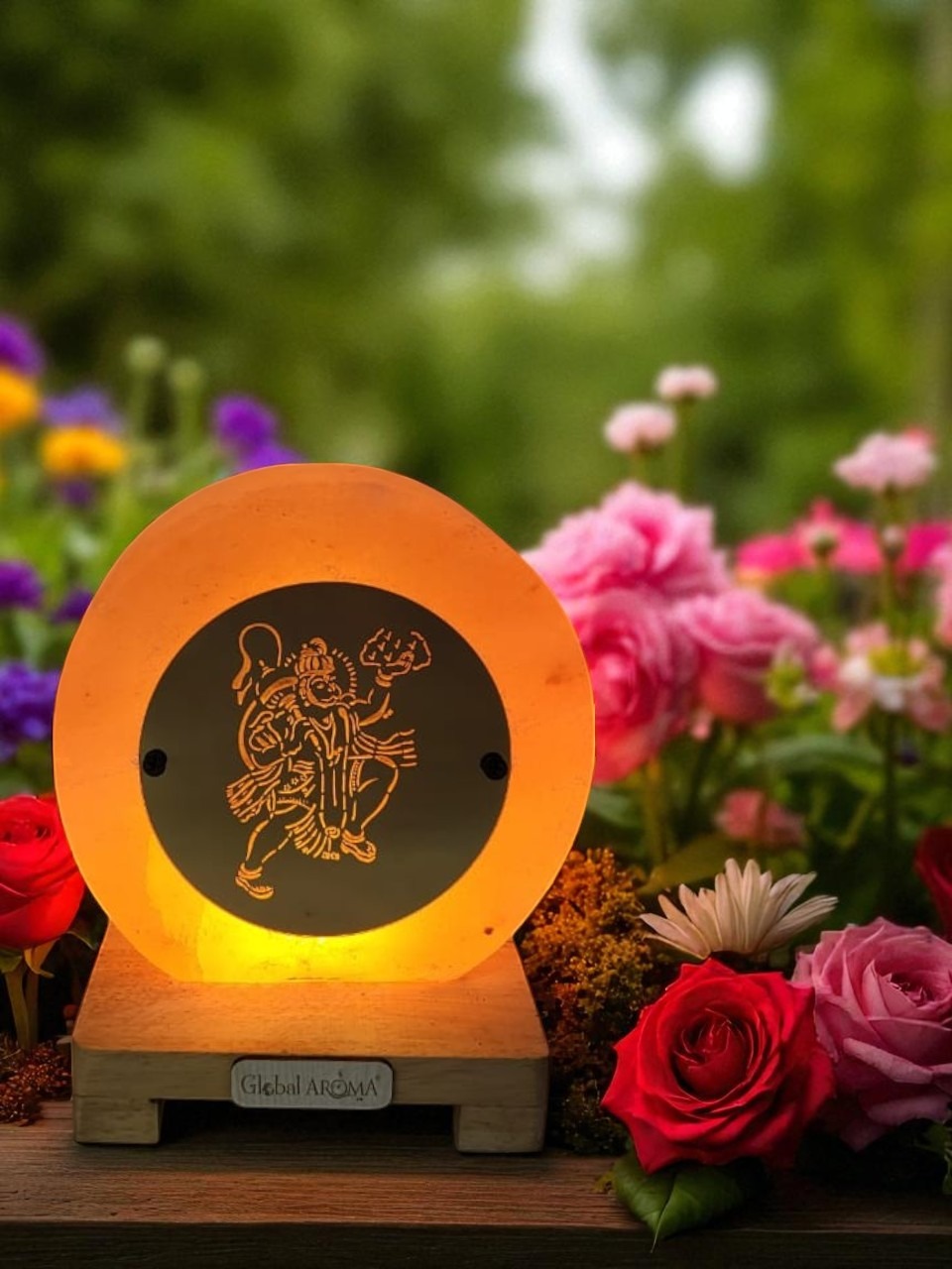 Golden Plate Veer Hanuman Himalayan rock salt crafted Lamp