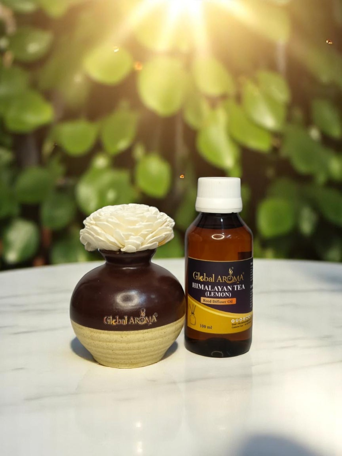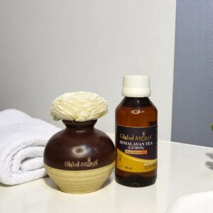 Elevate your space with the Global Aroma Himalayan Tea Lemon Reed Diffuser Set with Ceramic Pot. A premium ceramic pot and botanical oils create a bright, spa-like atmosphere in any room.