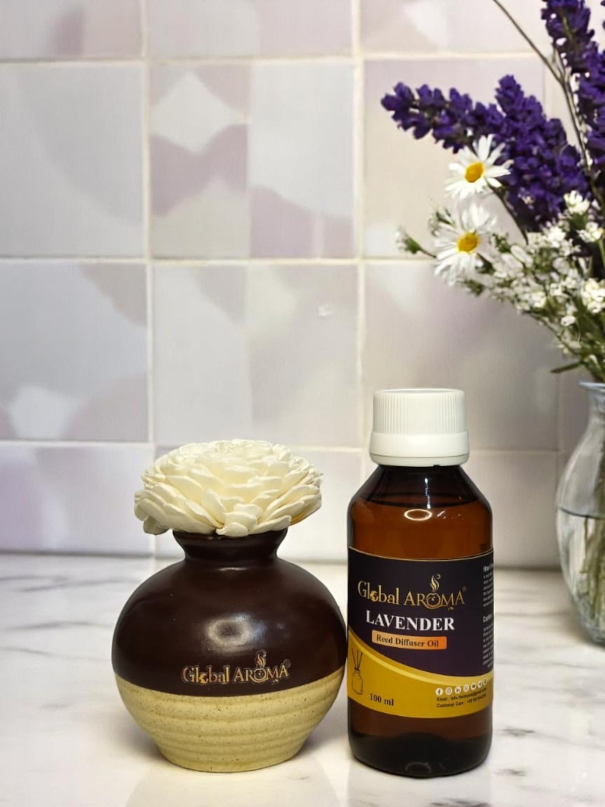 Turn your bedroom into a retreat with the Global Aroma Lavender Reed Diffuser with Ceramic Pot. This ceramic pot set releases a soothing, floral scent for ultimate relaxation.