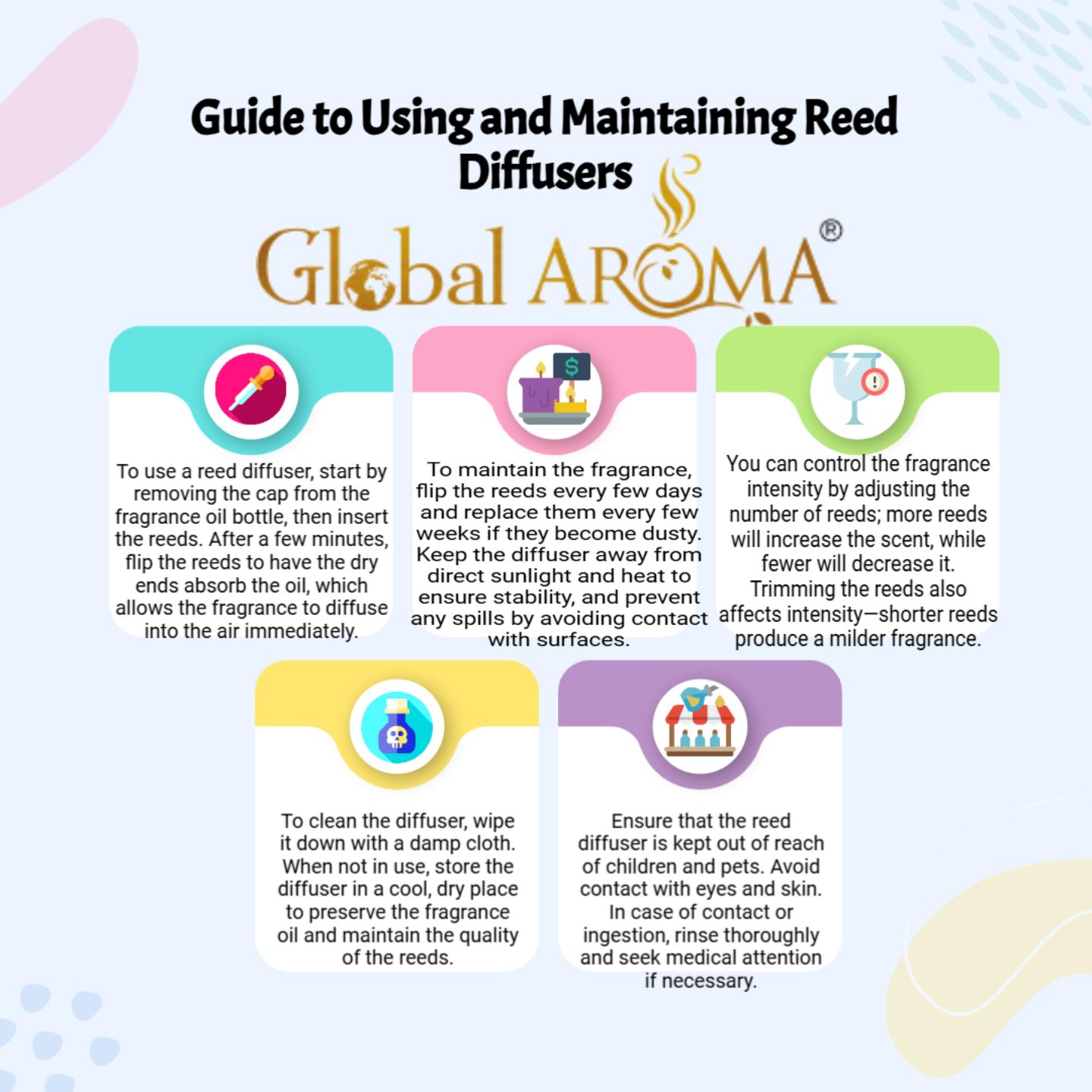 A premium reed diffuser set by Global Aroma offering a continuous, woody, and sophisticated smoky scent. Flame-free, stylish, and expertly crafted for a bold and refined home atmosphere. Shop now.
