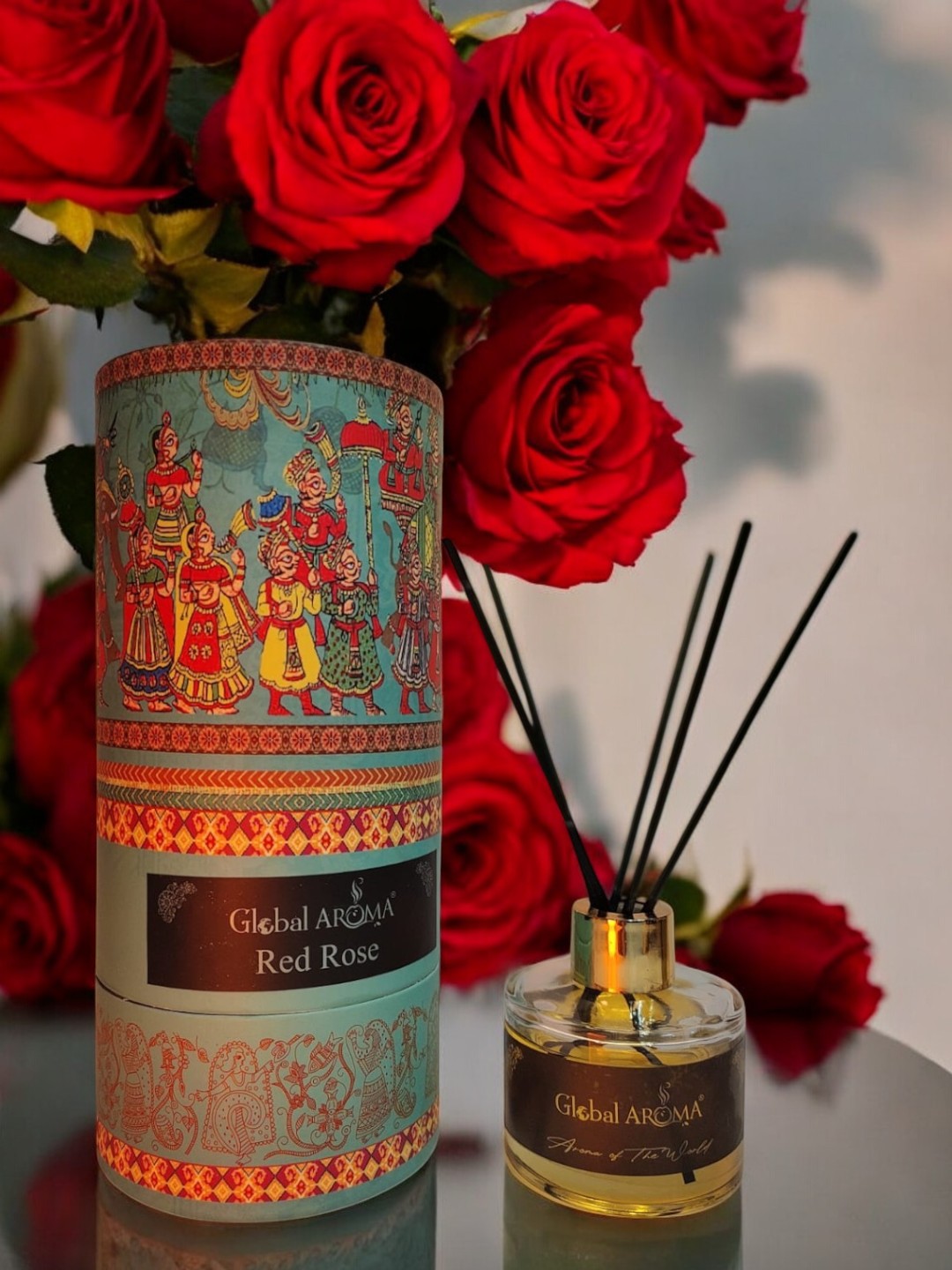 Experience the timeless, romantic allure of a blooming garden with the Global Aroma Red Rose Reed Diffuser Set. A breathtakingly deep, velvety floral aroma that brings the classic elegance of fresh-cut crimson roses into your living space. Elevate your home with a scent that defines “Passion” and luxury.