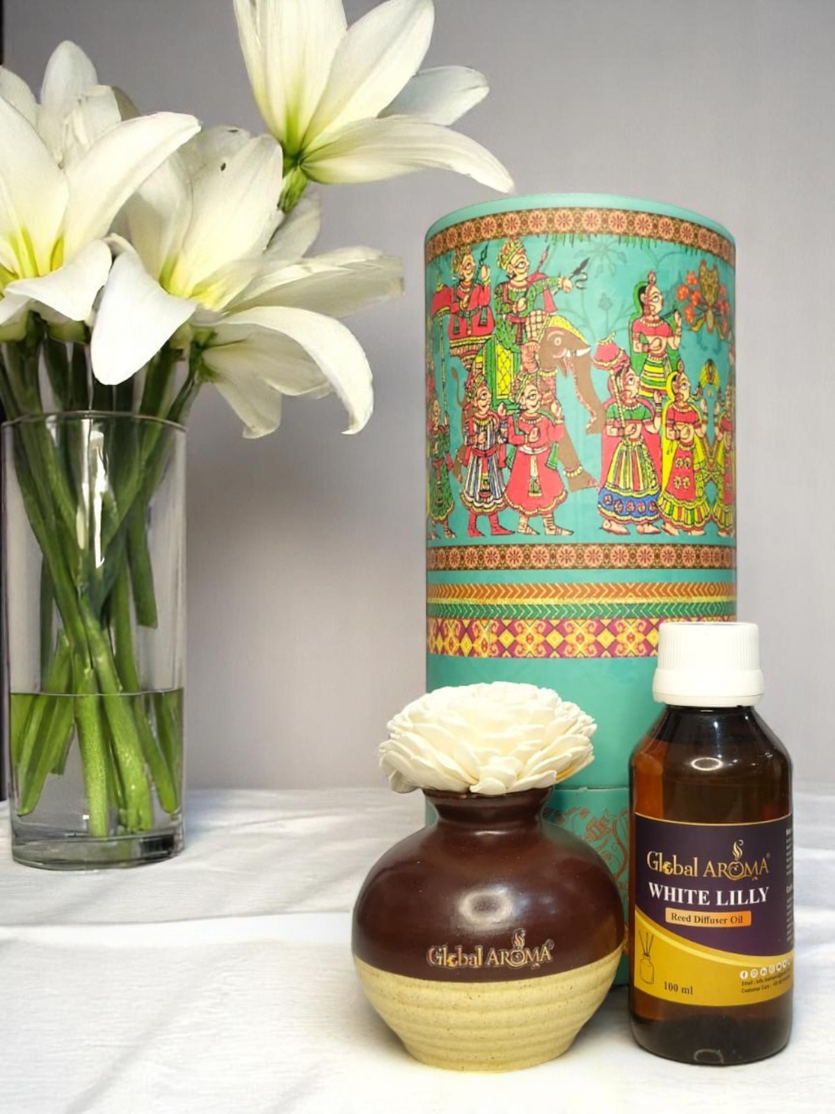 A premium reed diffuser set by Global Aroma offering a continuous, fresh, and luxurious white floral scent. Flame-free, stylish, and expertly crafted for a refined home atmosphere. Shop now.
